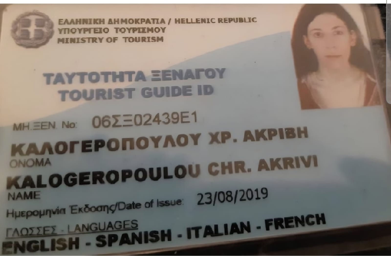 I guide in English, French, Spanish, Italian, German, and Greek.