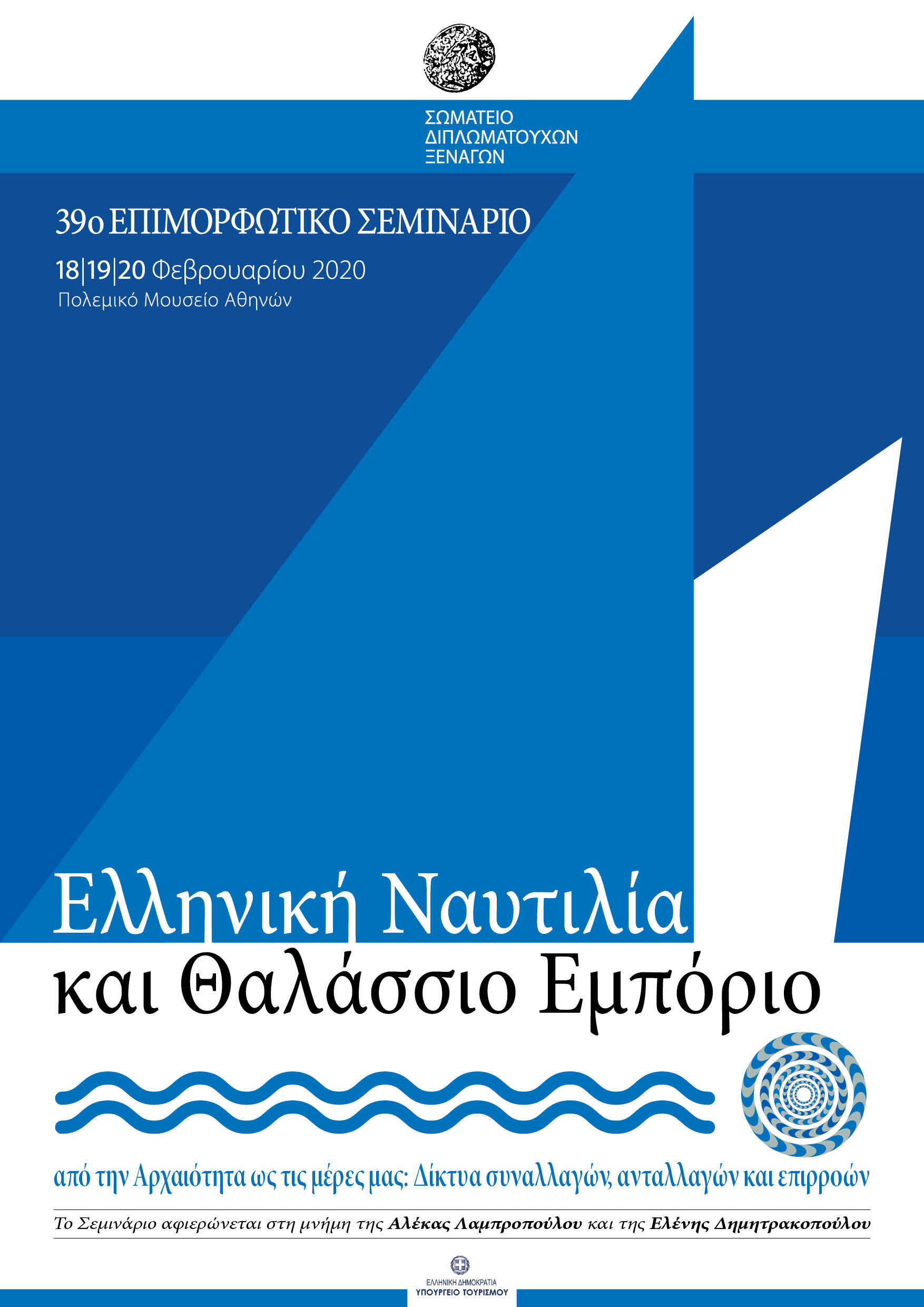 Σας προσκαλούμε να τιμήσετε με την παρουσία σας, το ετήσιο επιμοφωτικό σεμινάριο των Διπλωματούχων Ξεναγών με θέμα: ΕΛΛΗΝΙΚΗ ΝΑΥΤΙΛΙΑ ΚΑΙ ΘΑΛΑΣΣΙΟ ΕΜΠΟΡΙΟ από την Αρχαιότητα ως τις μέρες μας: Δίκτυα συναλλαγών, ανταλλαγών και επιρροών που διοργανώνει το Σωματείο Διπλωματούχων Ξεναγών.